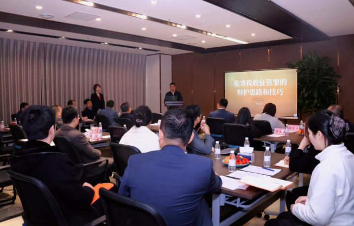 荣亚萍以逃税罪为切入点,结合税收征管实务流程,深入解析逃税罪构成要件及税务机关执法关注重点,从纳税人视角提出独到见解。同时,结合最高人民法院典型案例,阐述了逃税罪相关辩护观点的可行性与实践路径,为涉税案件办理提供了专业参考。培训现场研讨氛围热烈,参会律师积极交流互动。