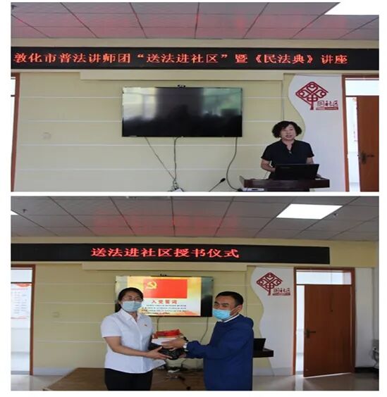 敦化市律师行业党组织开展送法进社区暨《民法典》讲座活动,并为社区赠送“七五普法”宣传读本100余本。