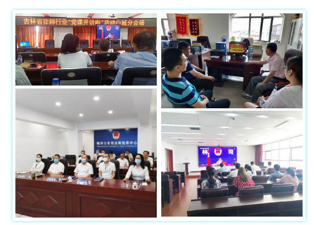 编者按:吉林省司法厅党组高度重视省委组织部和省直机关工委在全省部署开展的“党课开课啦”活动,将其作为加强基层党建工作的重要内容,决定在全省律师行业利用半年时间集中开展此项活动,通过厅党组书记、律师行业党委书记、律师事务所党支部书记或普通党员律师讲党课等多个层面,采用视频会议、网络直播、讲座式、访谈式、情景式等多种形式,组织引领全省广大党员律师认真学习贯彻习近平新时代中国特色社会主义思想、加强对习近平总书记全面依法治国新理念新思想新战略的学习解读,力求把推进律师行业党建工作的重大意义讲透彻、把党员律师最关心的问题讲明白、把党员律师应遵守的纪律规矩讲清楚,以高质量的党课效果触动党员律师的思想和灵魂,确保全省律师队伍自觉做习近平新时代中国特色社会主义思想的坚定信仰者和忠实实践者。